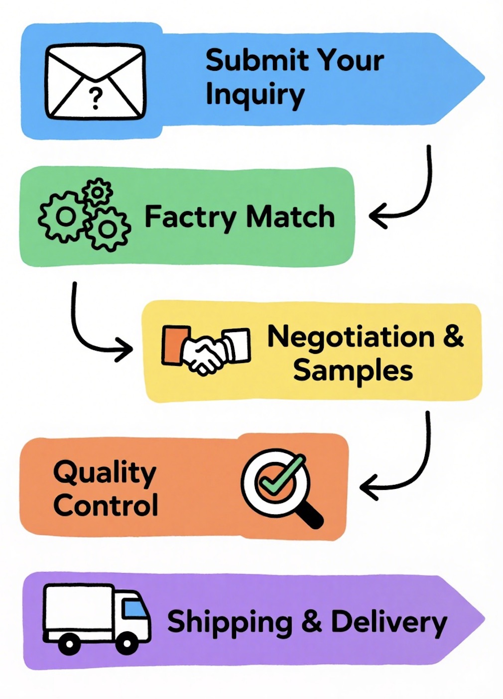 💬 We handle price/MOQ talks and arrange samples for approval.